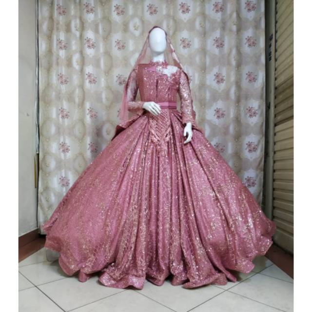Beli gaun pengantin warna dusty purple bulu ekor panjang terbaru di shopee.